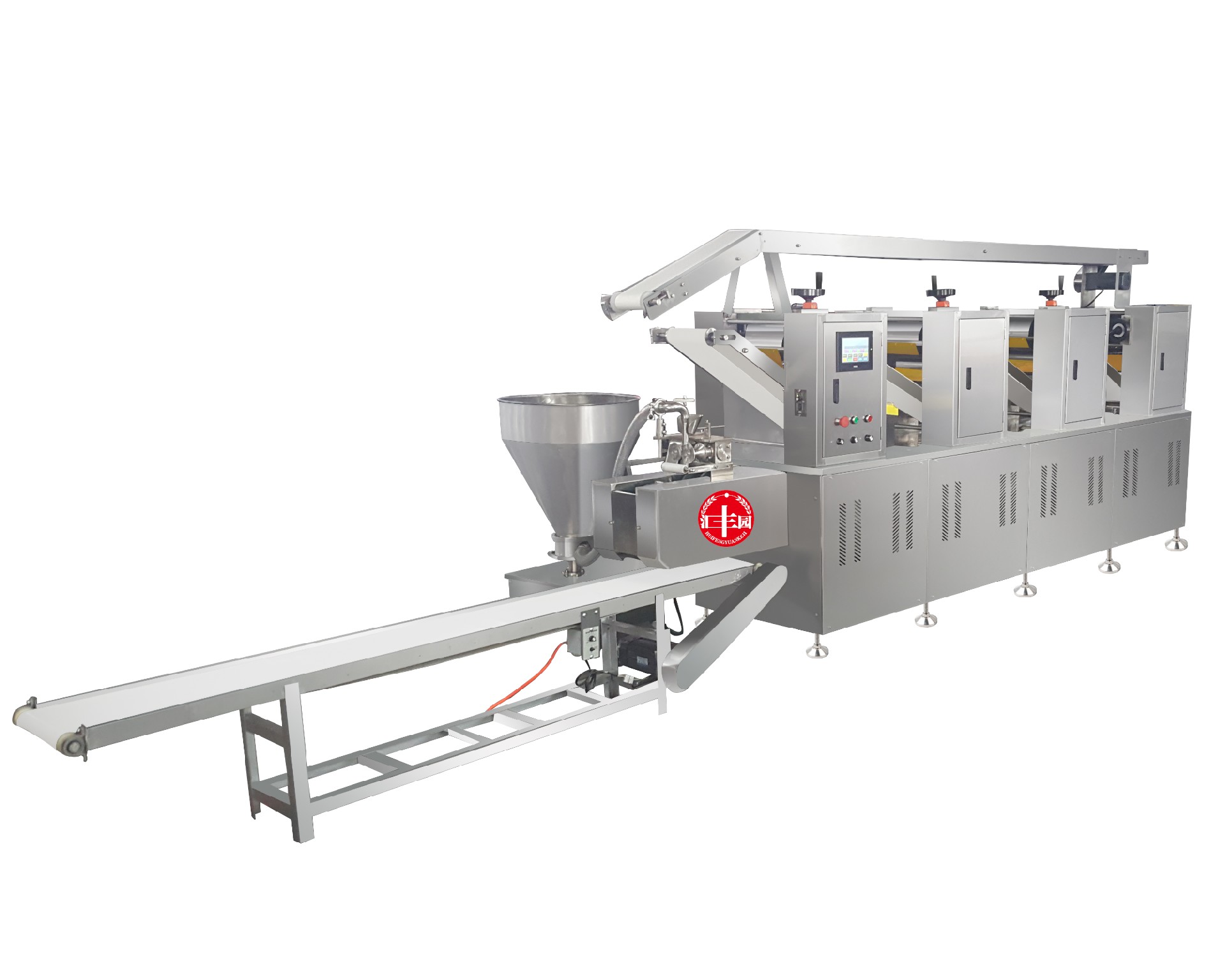 ◆ 供面和餡料分體控制,分散式出料傳送,出料均勻;避免聯(lián)動(dòng)錯誤問(wèn)題,操作簡(jiǎn)單省力;