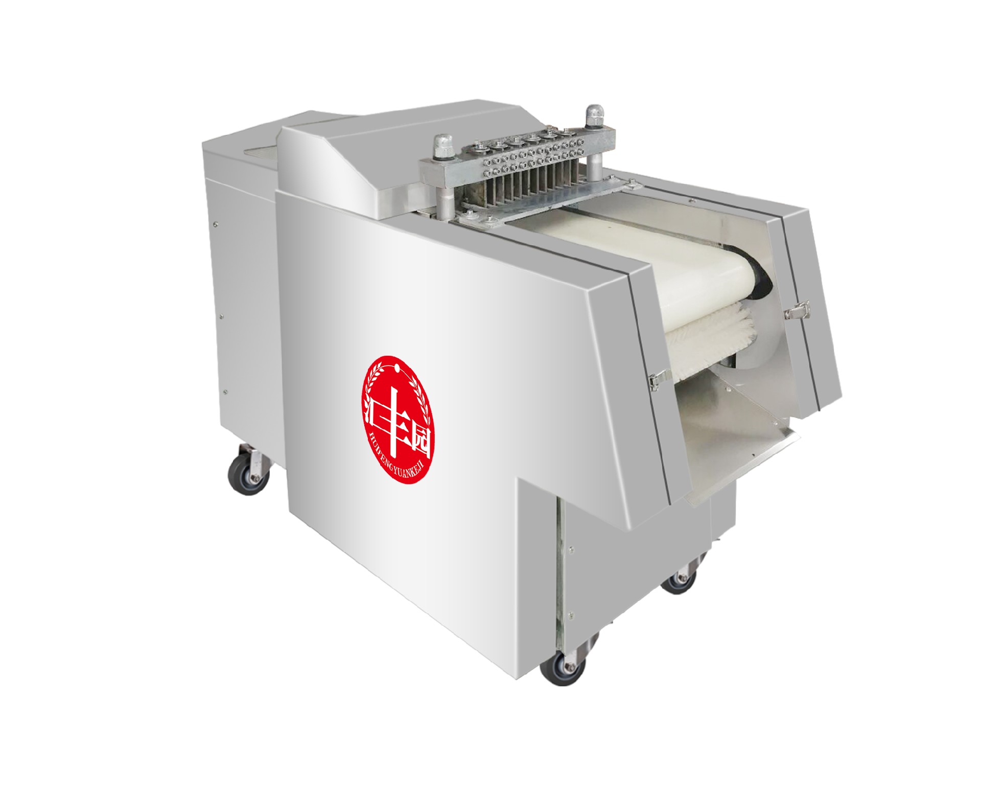 采用輸送帶進(jìn)料、出料,切片厚度可按照用戶(hù)要求制作,可快速更換不同的刀組,滿(mǎn)足用戶(hù)各種規格的切片要求。能快速拆裝進(jìn)、出料輸送帶及圓刀片組,整機采用防水設計,全不銹鋼制作,可直接用水沖洗機器。產(chǎn)品切割整齊,誤差非常小,方便操作,能實(shí)現產(chǎn)品快速包裝。標配尺寸25毫米;其它尺寸可定做。雞鴨禽類(lèi)可帶骨切割為塊狀。